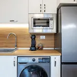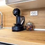 - ❓Is er een keuken beschikbaar in het appartement voor gasten?Ja, het appartement is uitgerust met een ingerichte keuken en biedt ook een waterkoker, een koelkast en een oven aan.